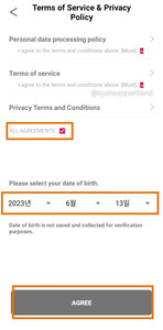 - Check 'All Agreements', select your date of birth and click 'Agree' to successfully log in